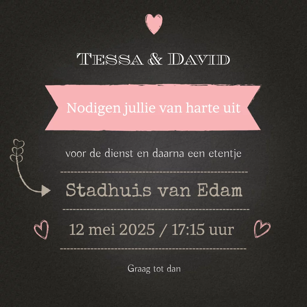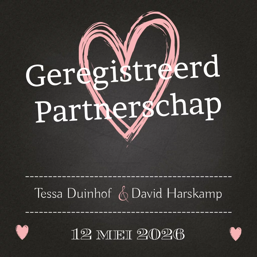 Geregistreerd Partnerschap kaart krijtbord met roze getekend hart