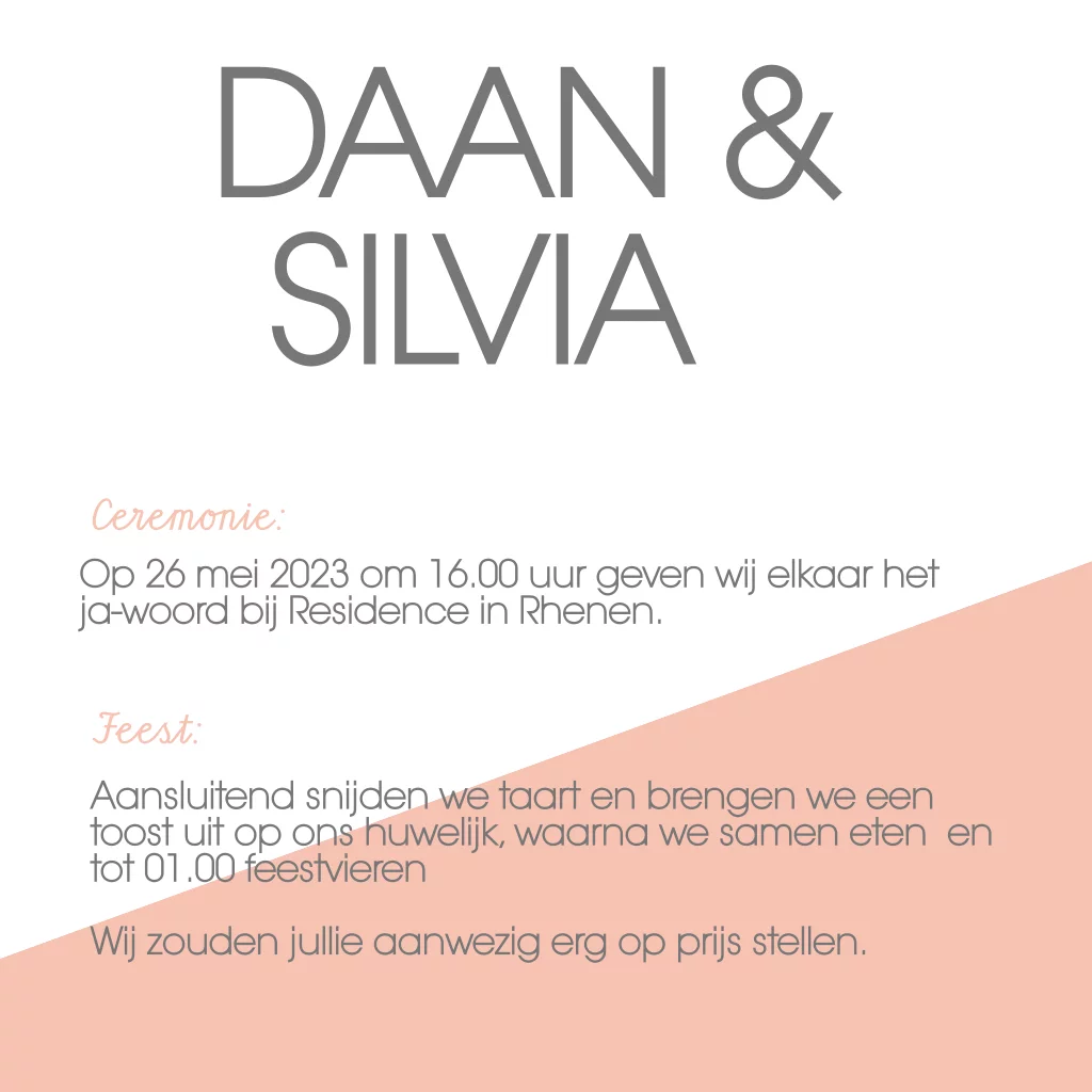 Tip: bestel de kaart op parelmoer of ivory gold papier en een peach envelop.