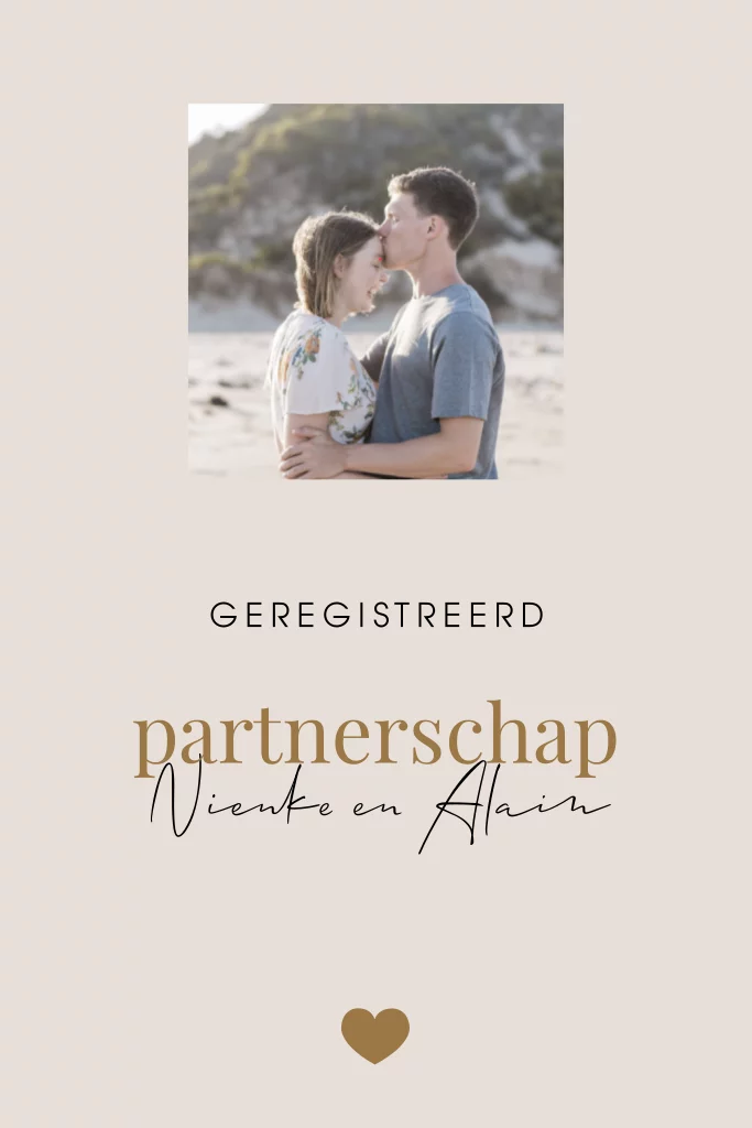 Geregistreerd Partnerschap uitnodiging in minimalistische rustige stijl met een foto. De kleuren en lettertypes zijn naar wens aan te passen. (24468)