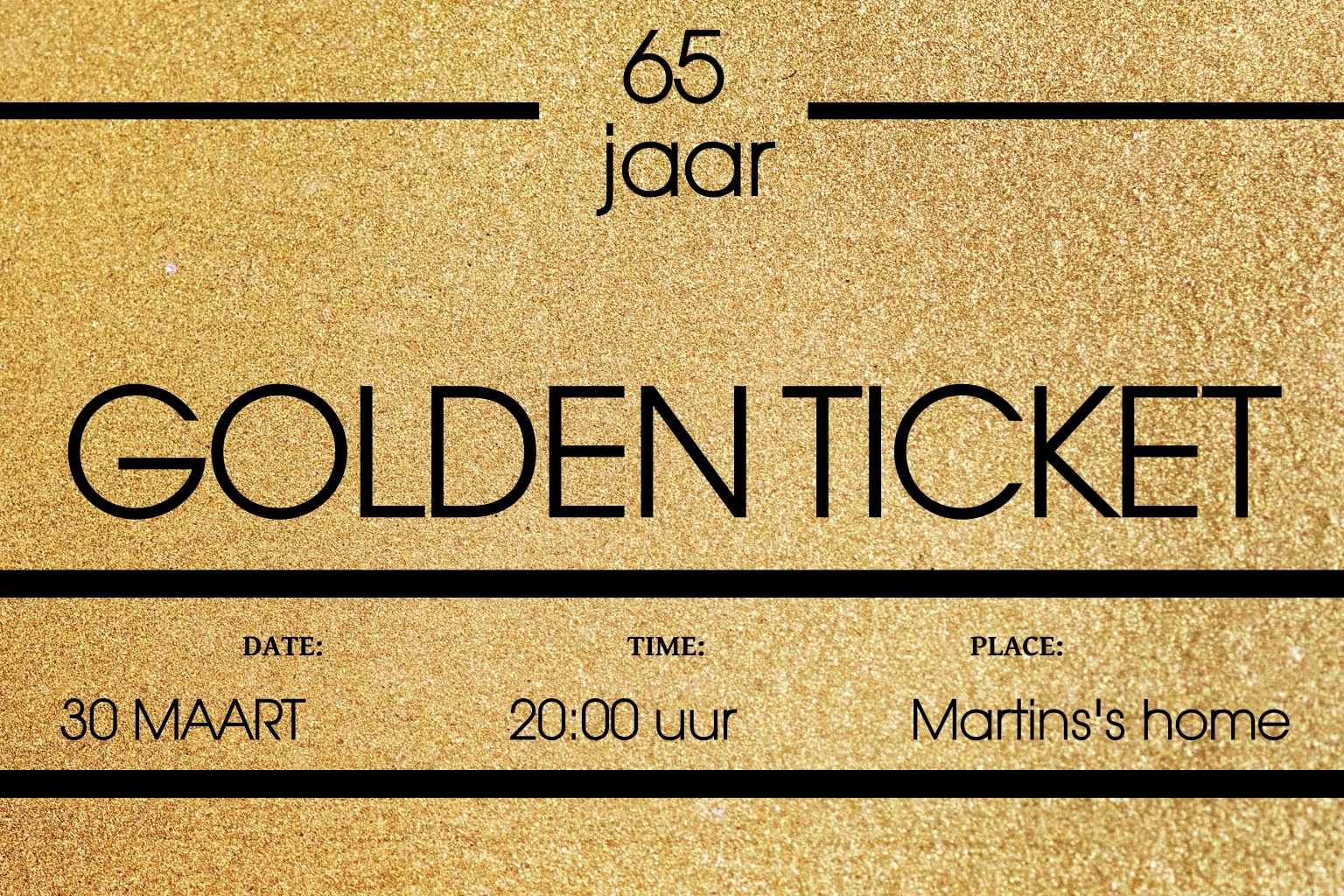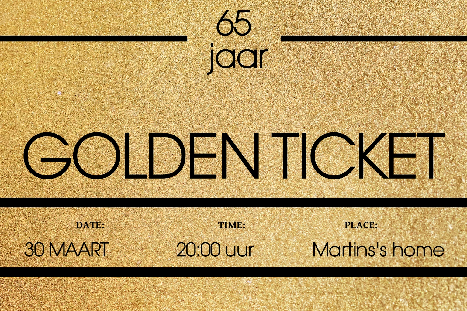 Grappige uitnodiging golden ticket voor een 65e verjaardagsfeest