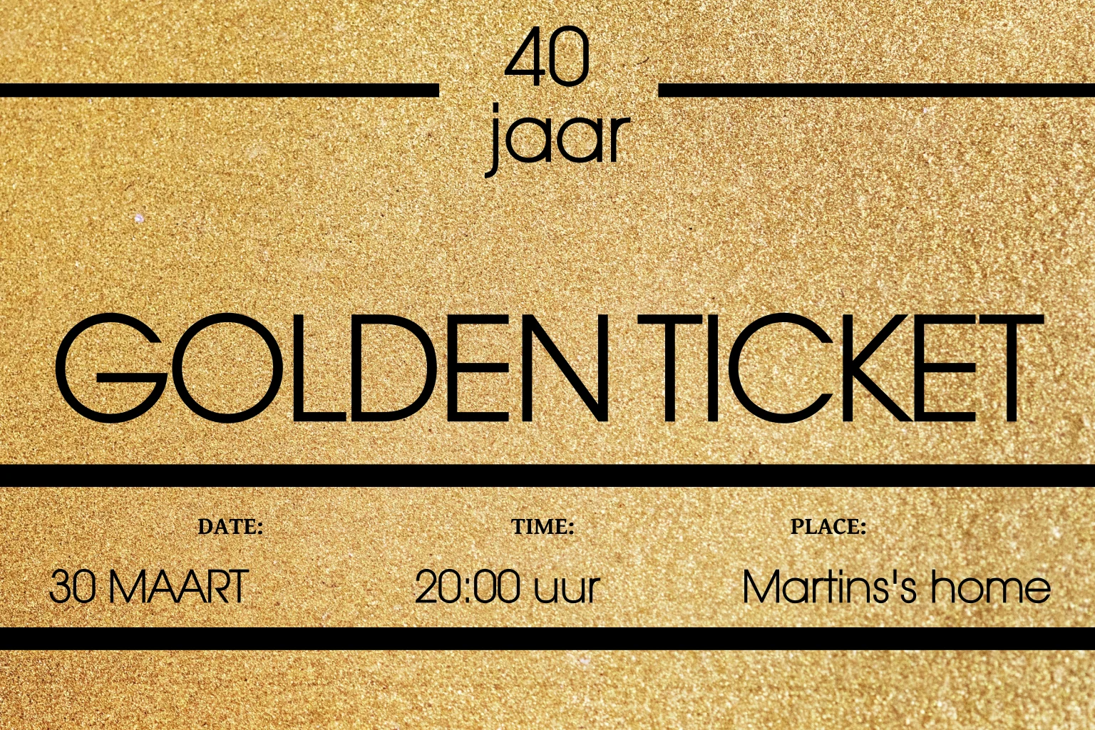 Grappige uitnodiging golden ticket voor een 40e verjaardagsfeest