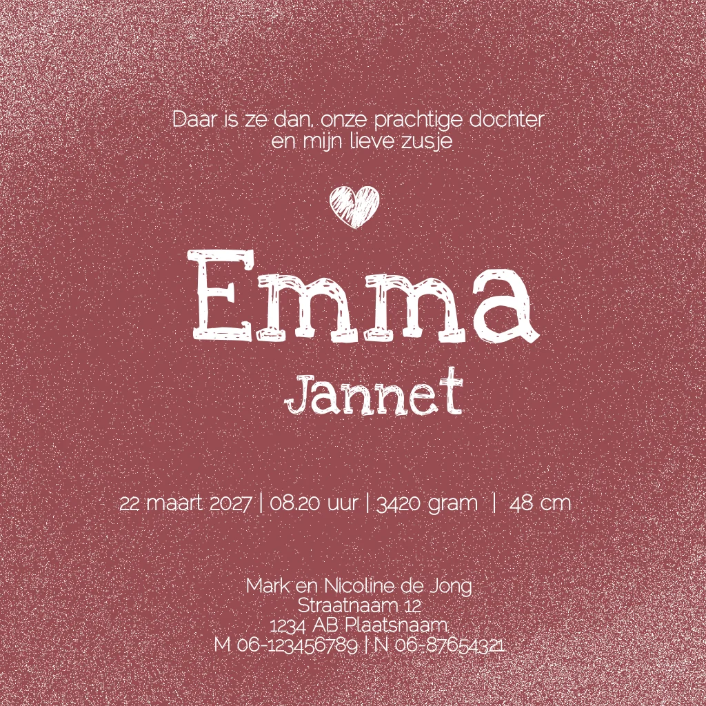 Modern geboortekaartje voor een meisje met een warm roze trend kleur. (999999)