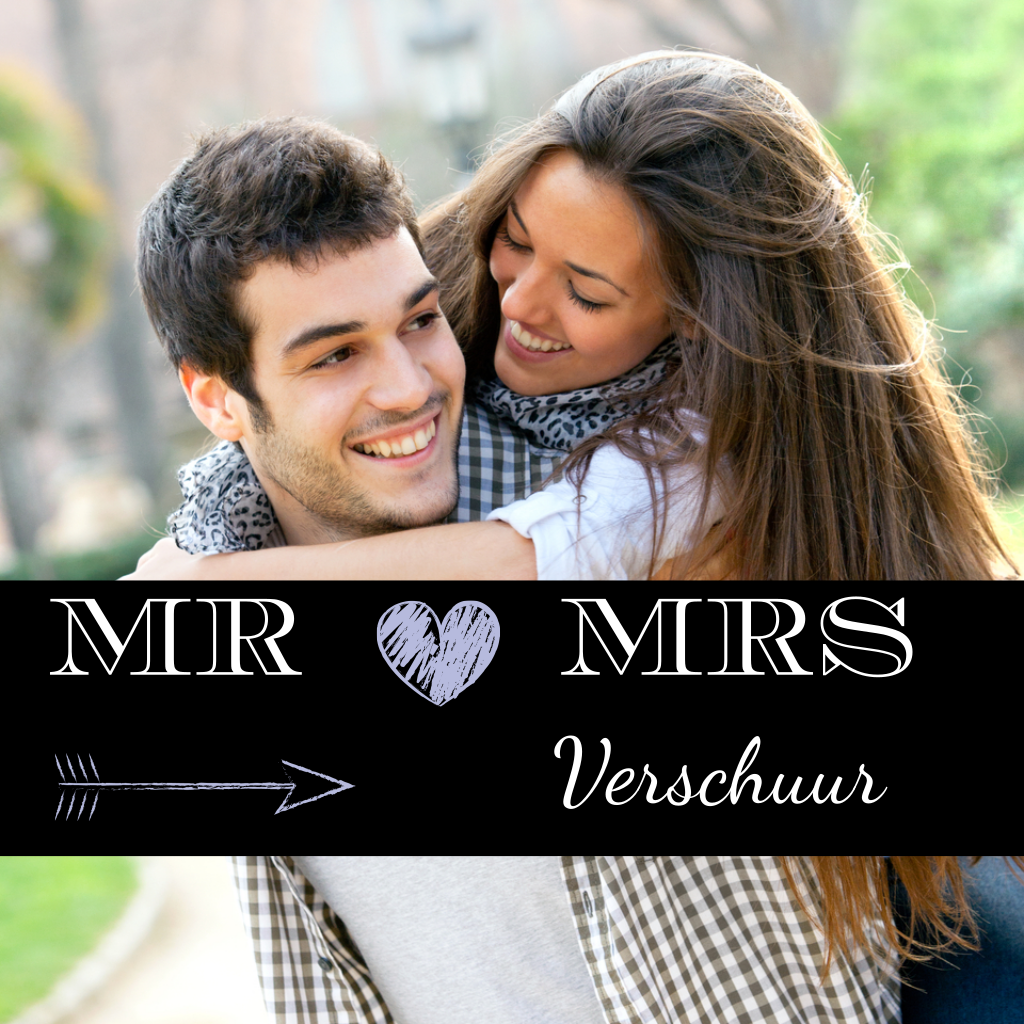 Hippe moderne mr mrs trouwkaart hart typografie en foto. Kleuren zijn naar keuze aan te passen. (2536) trouwkaarten