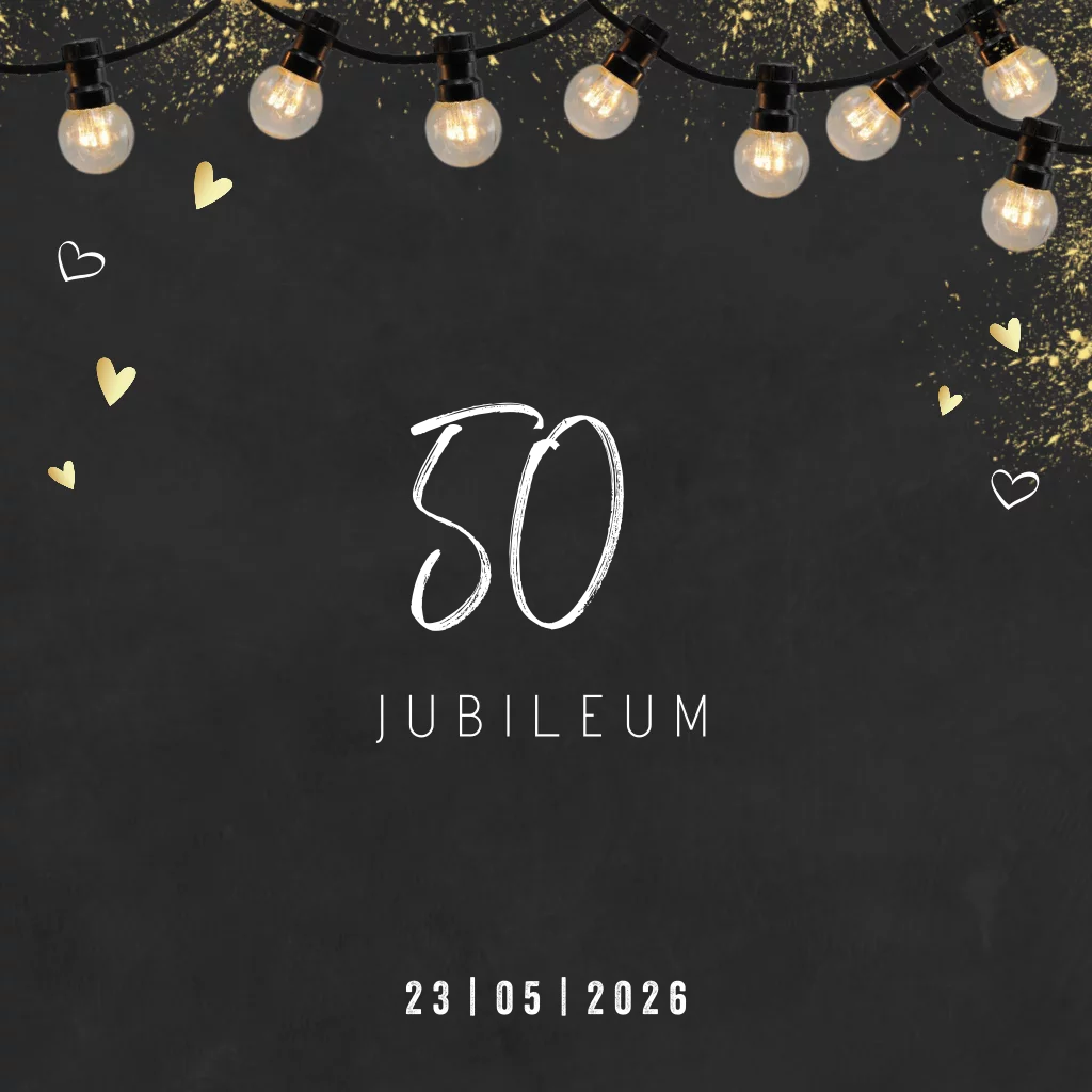 Jubileum 50 uitnodiging lichtsnoer goud folie krijtbord achtergrond