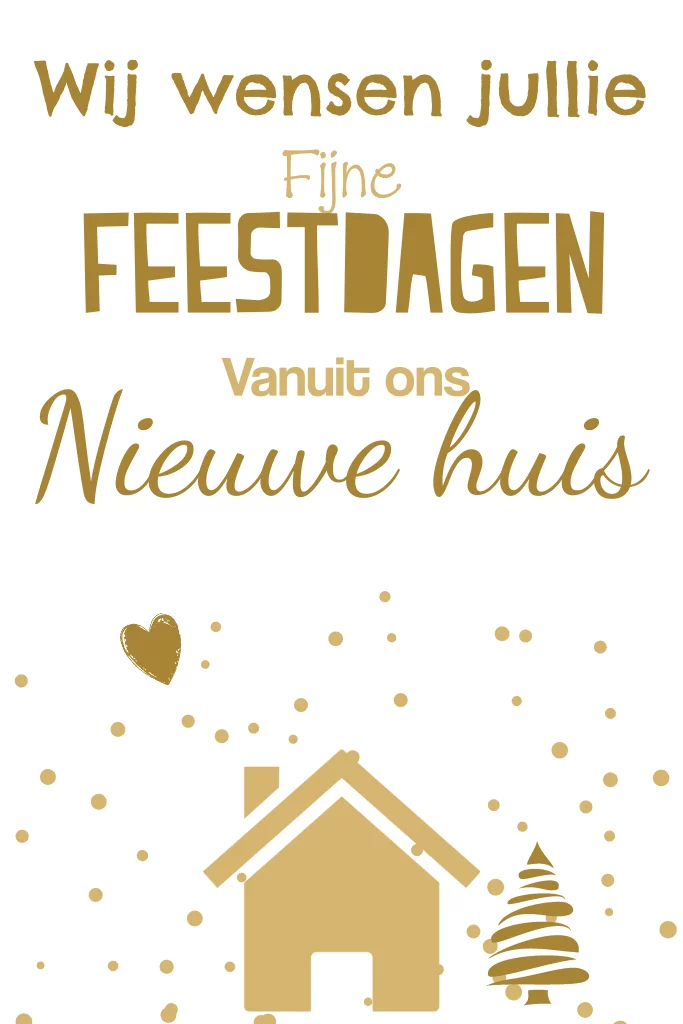 Verhuiskaart kerst goudkleurig huisje en sneeuw (2154).