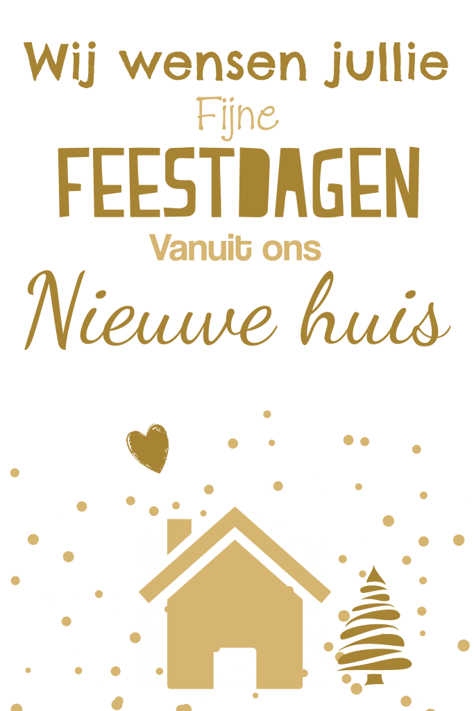 Verhuiskaart kerst goudkleurig huisje en sneeuw.(2154)