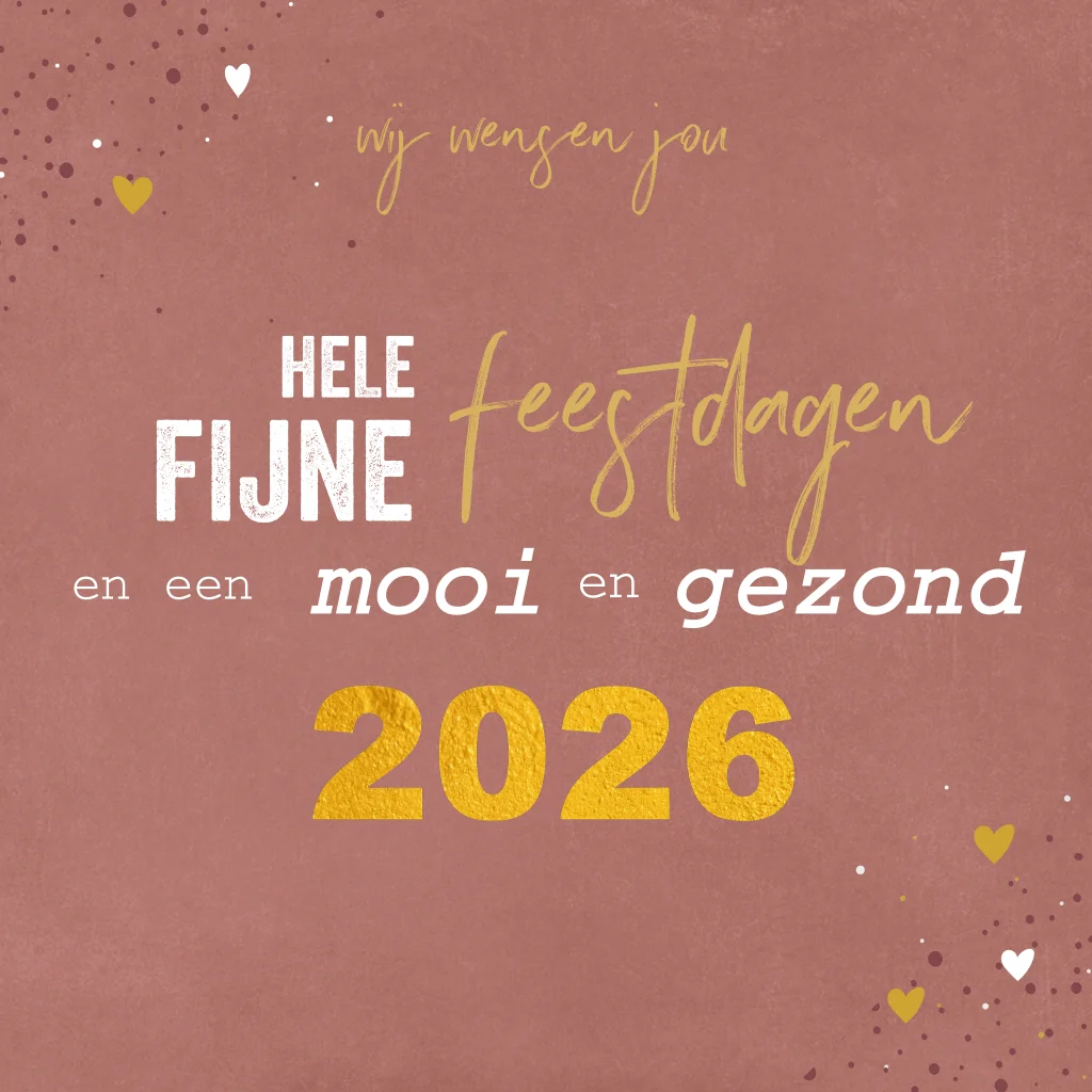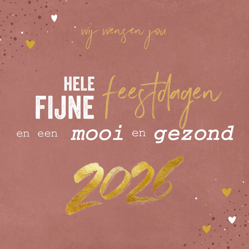 Kerstkaart mooi en gezond nieuwjaar modern warm terra roze 2026 spetters. (22642)