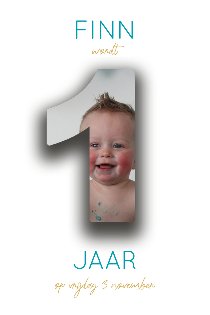 Leuke fotokaart uitnodiging kinderfeestje 1 jaar