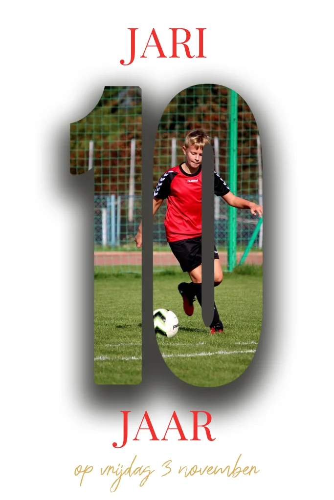 Leuke fotokaart om te gebruiken als uitnodiging voor een kinderfeestje voor iemand die 10 jaar gaat worden.