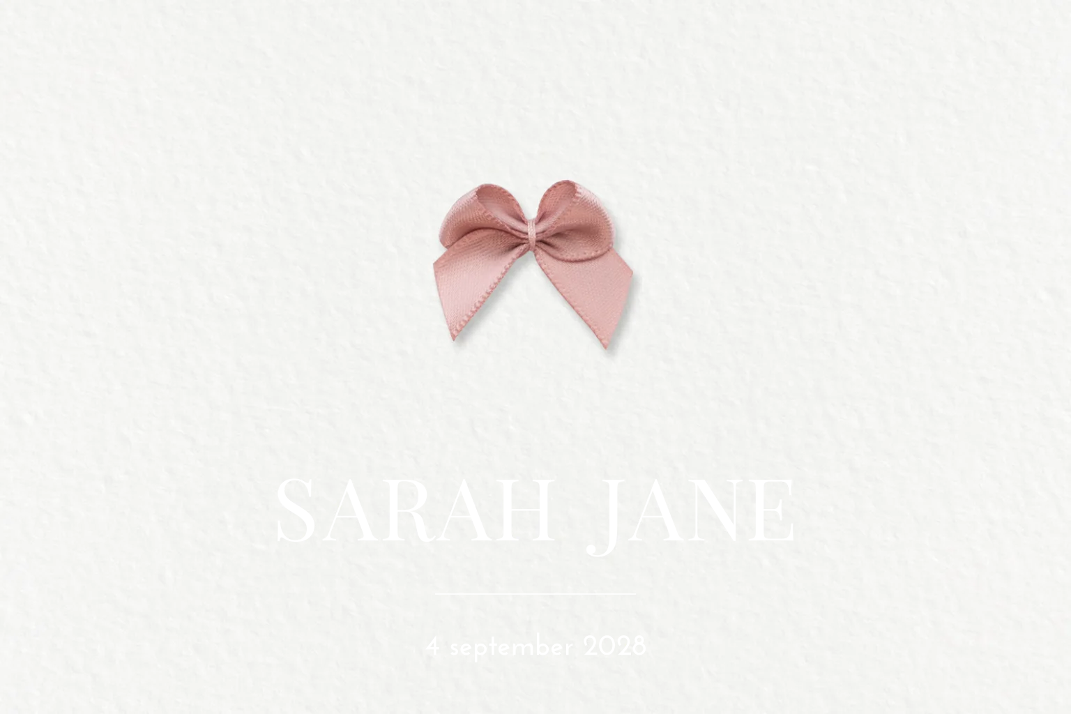 LET OP: Bij de proefdruk én eindorder worden NIET standaard strikjes geleverd. Het strikje wordt niet afgedrukt, deze is ter voorbeeld. Op die plek kun je straks zelf het échte satijnen strikje plakken. Bestel in het besteloverzicht van de proefdruk een voorbeeldsetje met satijnen strikjes. Wil je deze kaart maar dan dubbel zodat je meer ruimte hebt? Dat kan! Neem daarvoor contact met ons op.