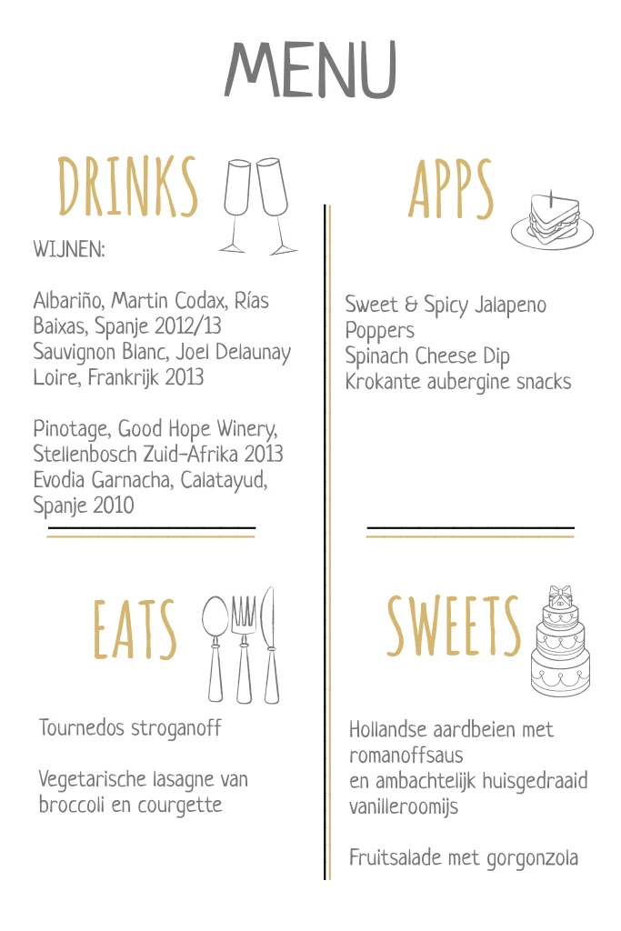 Menukaart met symbolen voorgerecht hoofdgerecht en nagerecht. Alles is naar keuze aan te passen. Bestel voor 1 euro jouw proefkaartje. Gratis verzending binnen Nederland en België. (3809)