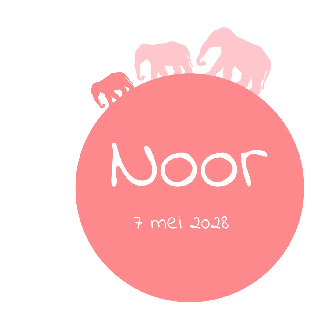 Modern geboortekaartje met olifanten op een roze wereldbol (1886)