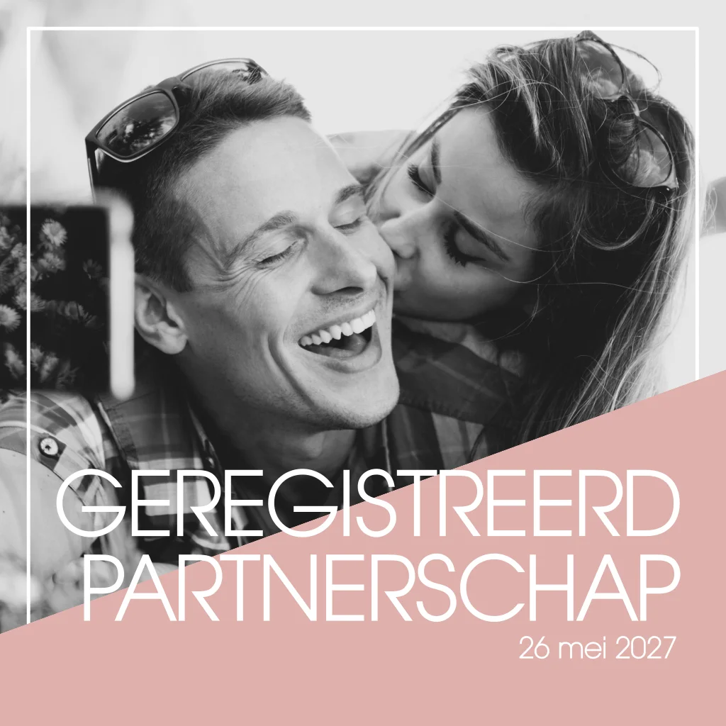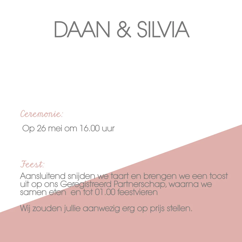Mooie Geregistreerd Partnerschap uitnodiging kaart met ruimte voor een eigen foto met oud-roze.