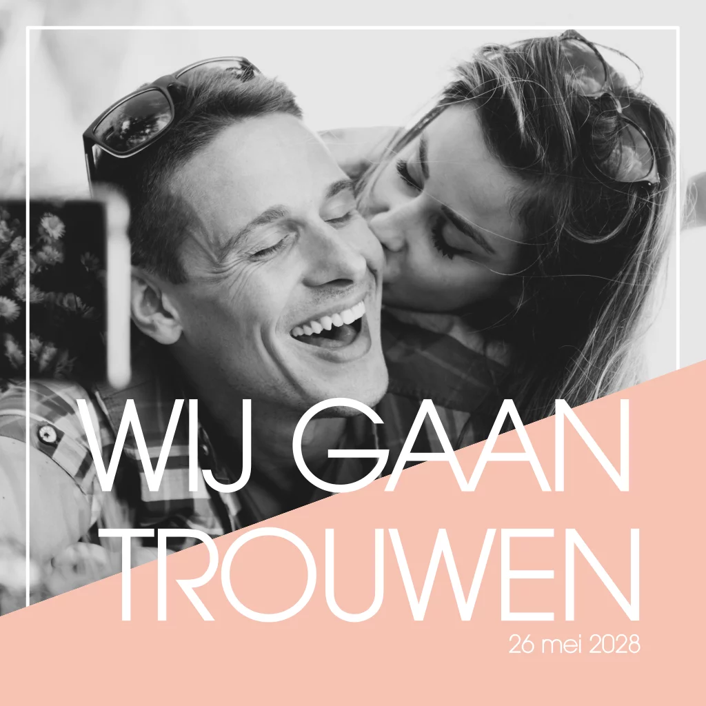 Trouwkaart met ruimte voor een eigen foto met roze vlak, de kleur is naar wens aan te passen.