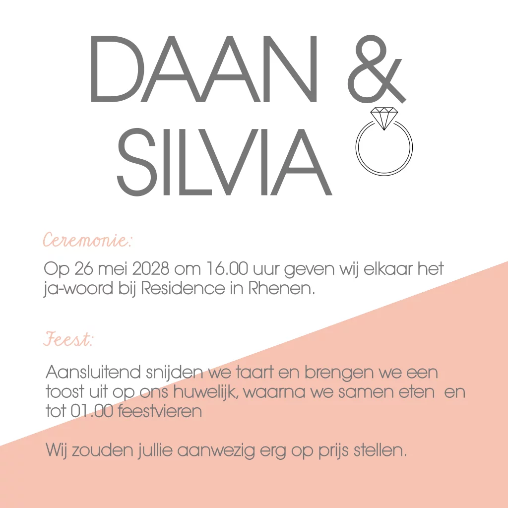 Tip: bestel de kaart op parelmoer of ivory gold papier en een peach envelop.