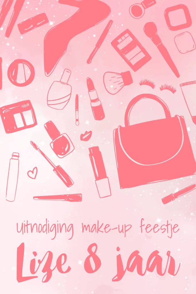 Uitnodiging voor een make-up en slaapfeestje. Kies je eigen achtergrond en pas kleuren naar wens aan (23956)