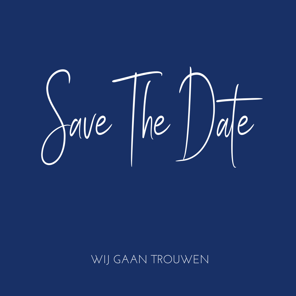 Save the date donkerblauw met echte goud-folie letters en typografie. De achtergrondkleur is naar wens aan te passen. (8345)