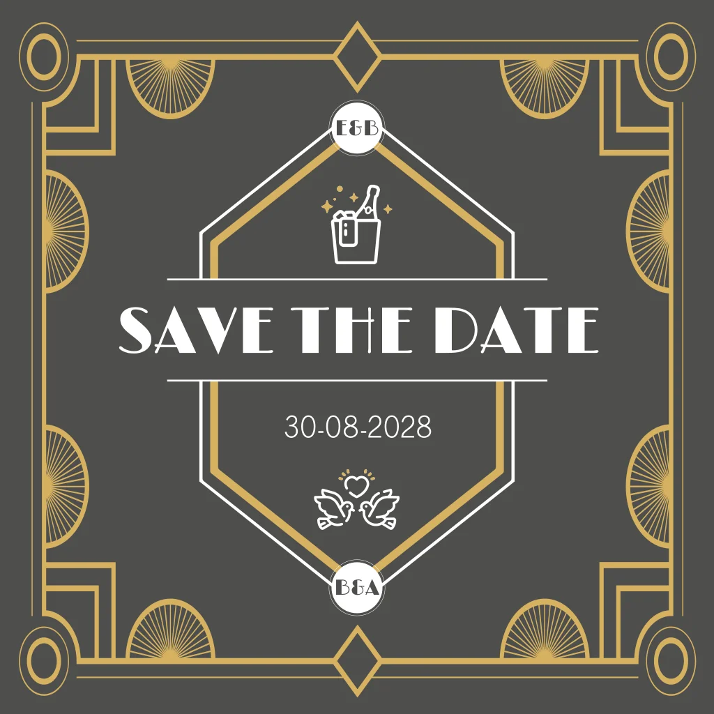Save the date kaart huwelijk met Art Deco patronen. (22693)