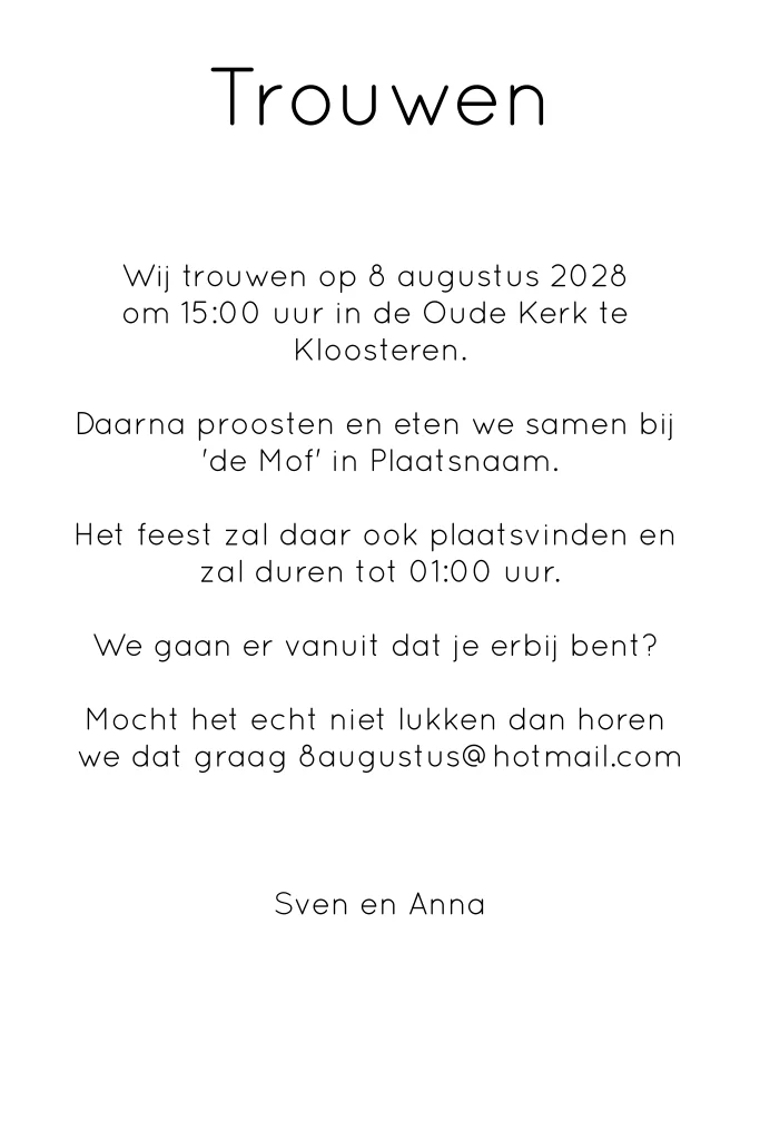 Eenvoudige trouwkaart met ruimte voor een eigen foto