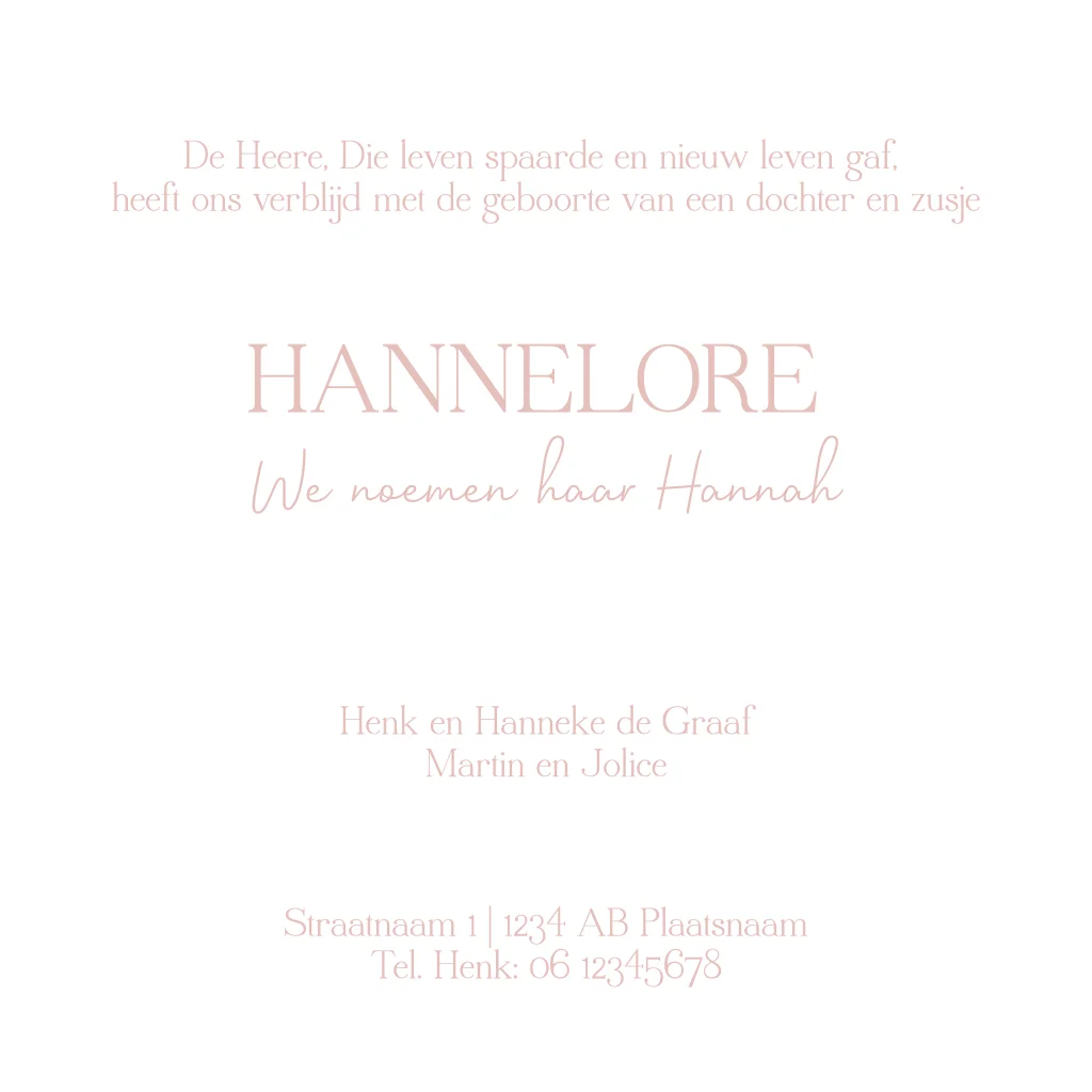 Stijlvol en klassiek geboortekaartje voor de geboorte van een meisje met een silhouet van een hoofdje. Wil je een ander hoofdje? Kijk bij afbeeldingen en versieringen > geboorte. Je kunt de kaart bestellen in 9 papiersoorten en 3 formaten: 11, 13 en 15 cm. (24731)