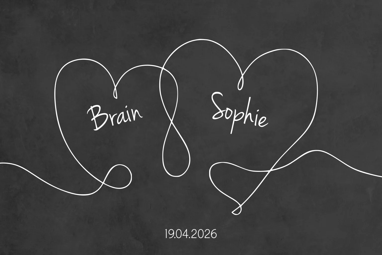 Trouwkaart met goudfolie hart op krijtbord achtergrond. (23103)let op: het kan zijn dat de lijntjes goud niet helemaal tot de rand lopen, dit is helaas niet altijd doorlopend te krijgen met foliedruk.