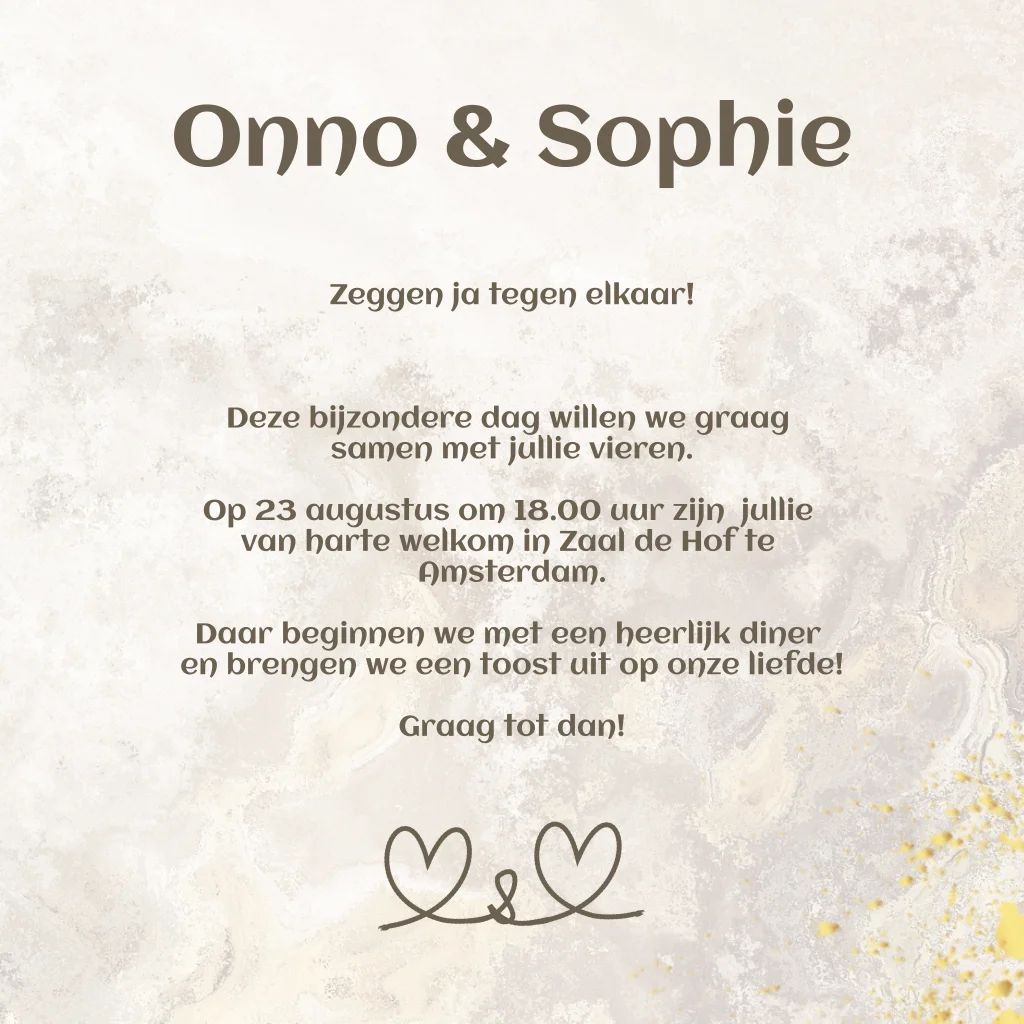 Trouwkaart met marble structuur look achtergrond bruin goud