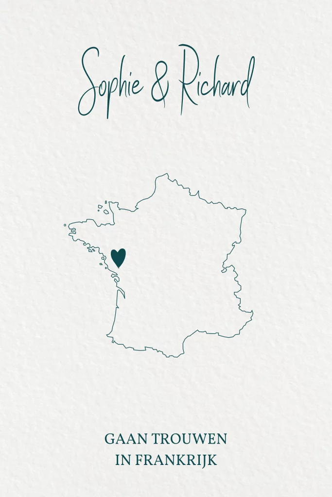 Trouwkaart trouwen in Frankrijk landkaart linnen-look