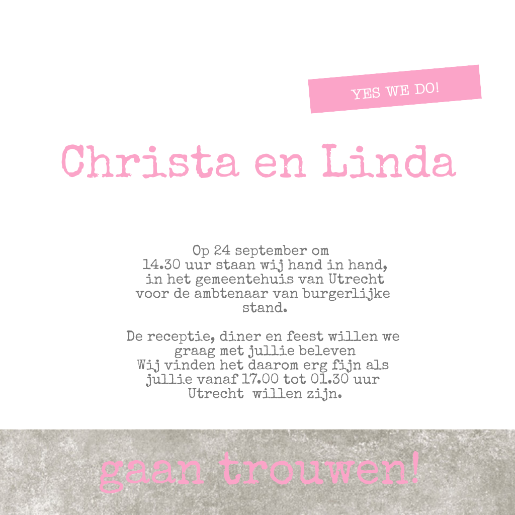 Trouwkaarten lesbisch huwelijk met hakken