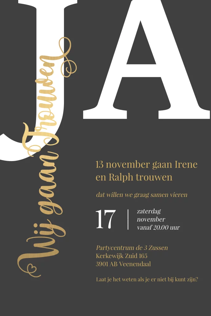 Typografie trouwkaart klassiek ontwerp met JA en Gaan Trouwen. Kleuren kunnen naar wens aangepast worden. (24190)