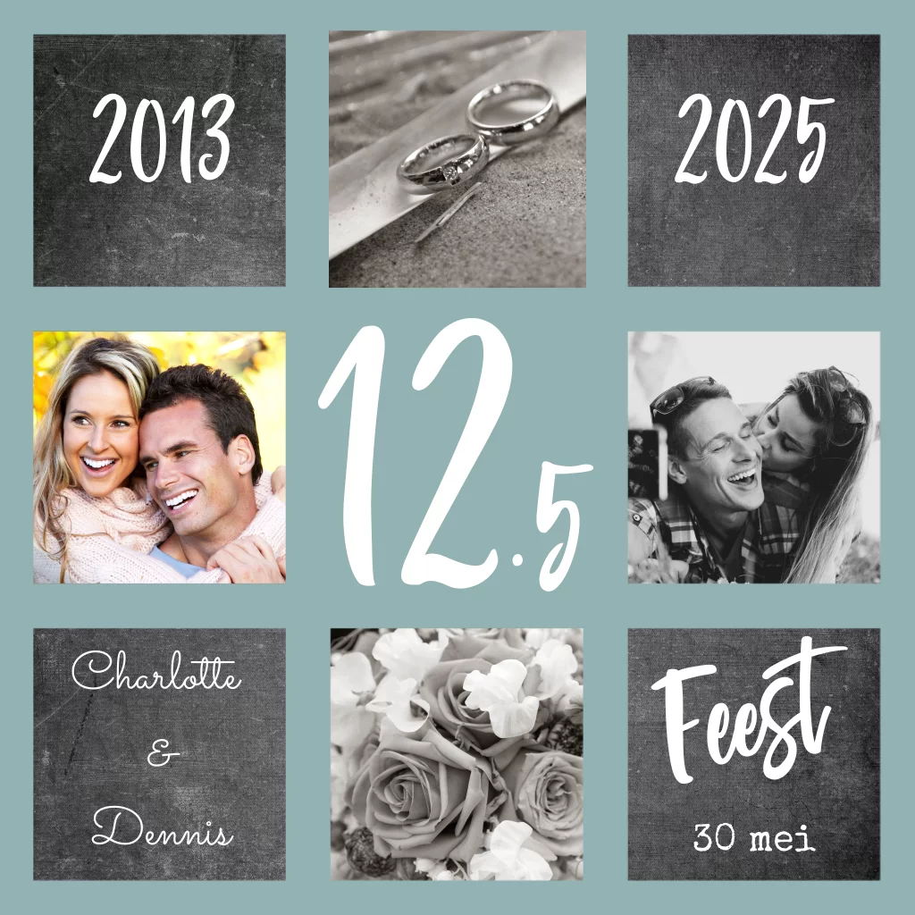 Uitnodiging 12.5 jaar getrouwd jubileum met foto' en fotocollage. Mail ons gerust voor hulp bij het plaatsen van de foto's! (2024)