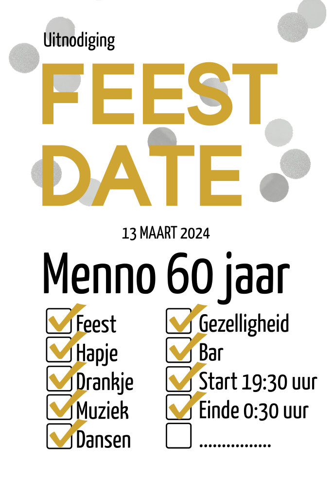 Uitnodiging 60 jaar feest date feestje checkbox
