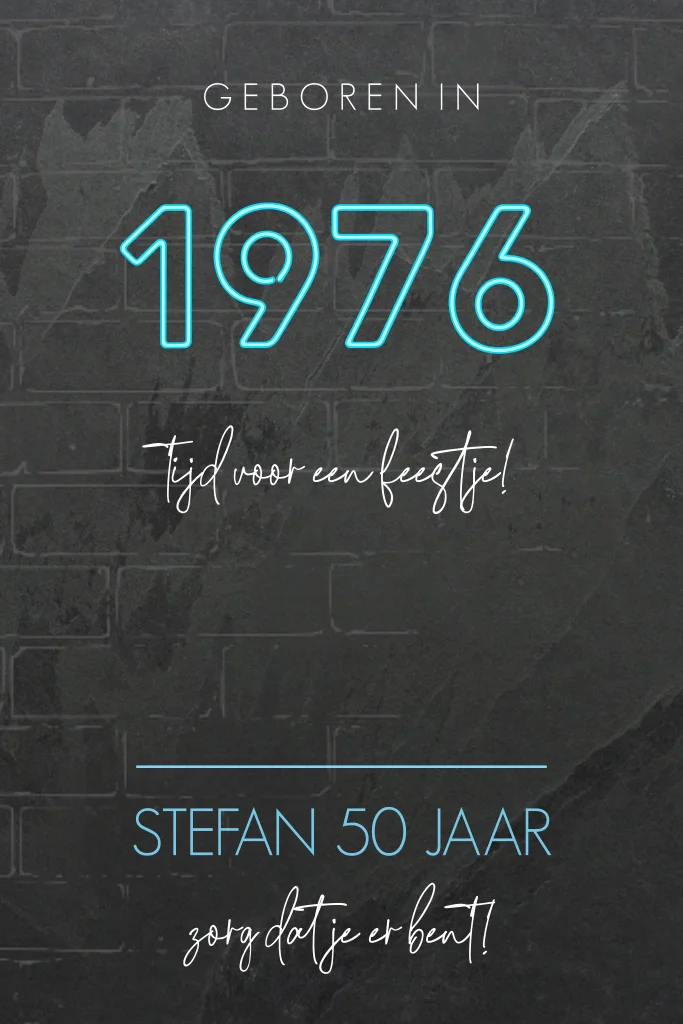 Uitnodiging geboren in 1976 50 jaar neon-licht