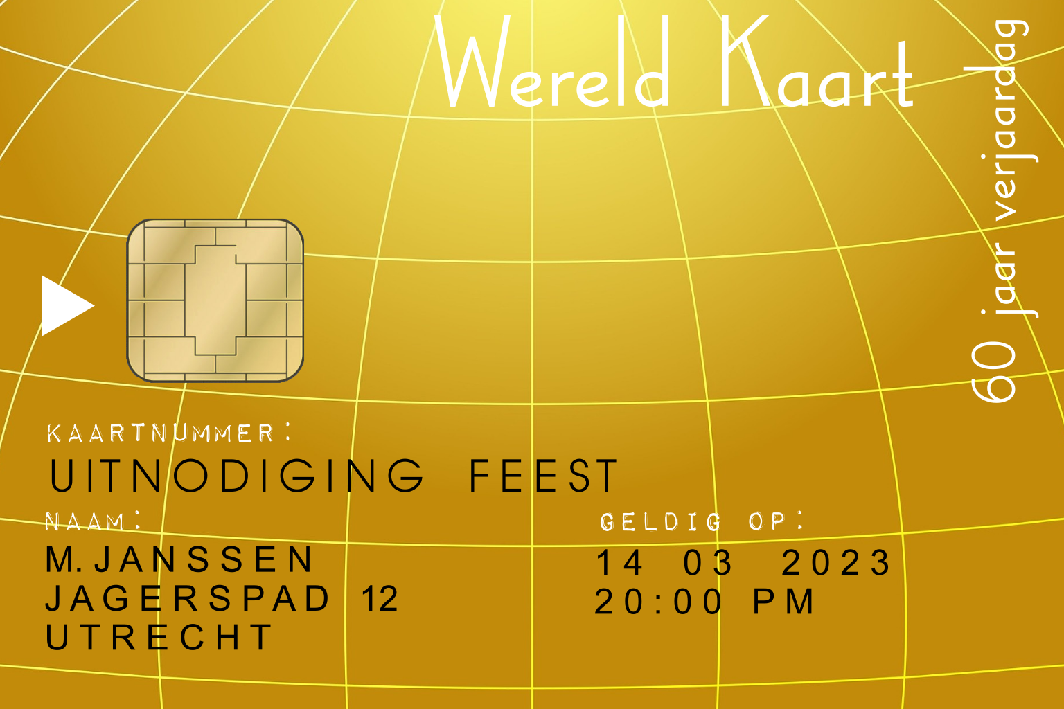 Grappige uitnodiging goudkleur voor een verjaardagsfeest 60 jaar in pinpas-look (6276).