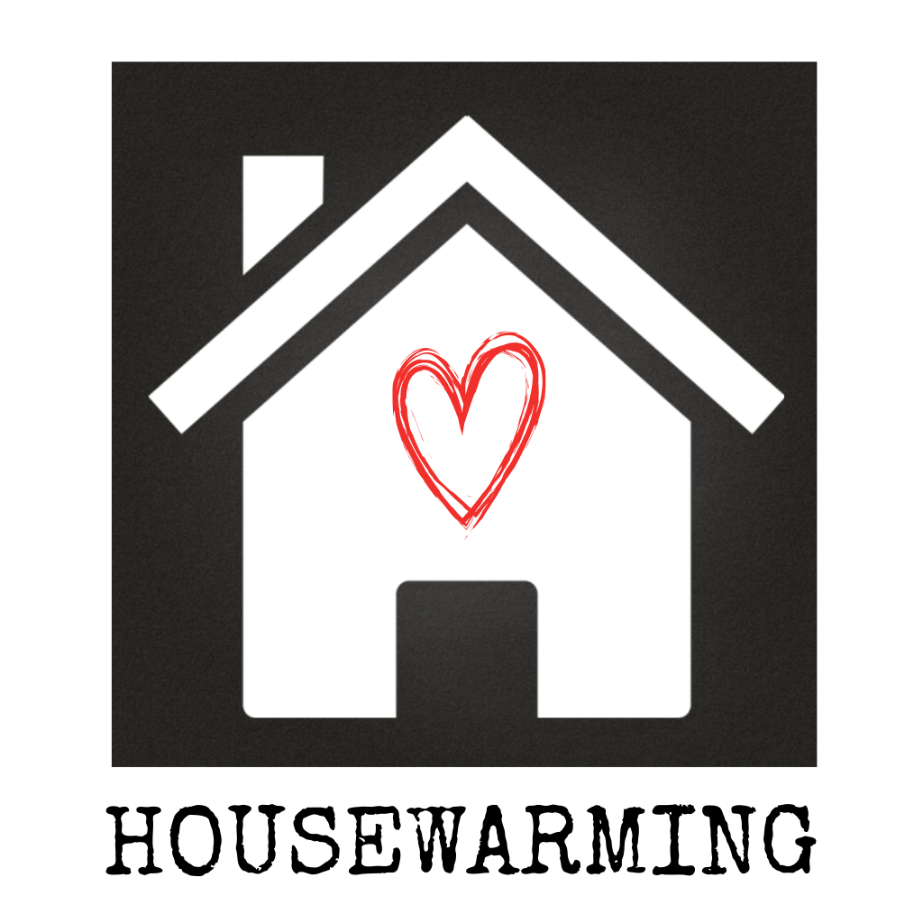 Housewarming uitnodiging zwart wit met krijtbord huisje en hartje