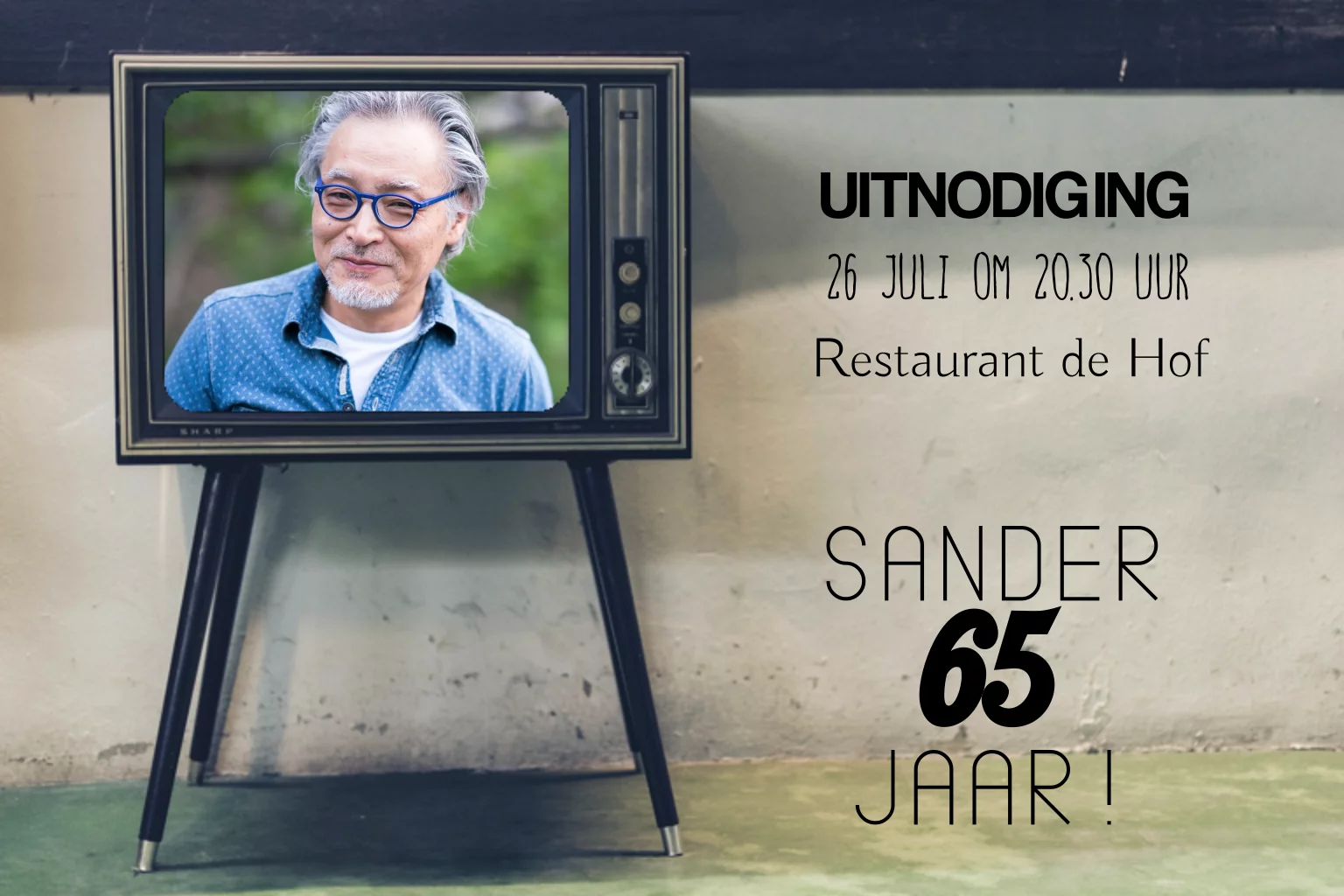 Uitnodiging verjaardag man retro 65 jaar oude televisie