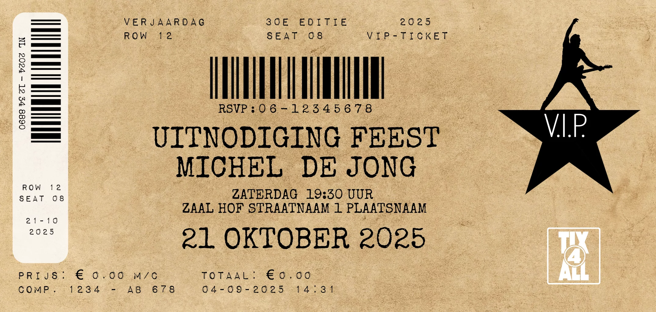 Grappige uitnodiging voor een feest in de look van een oud cinema / concert / bioscoop / ticket (6629).