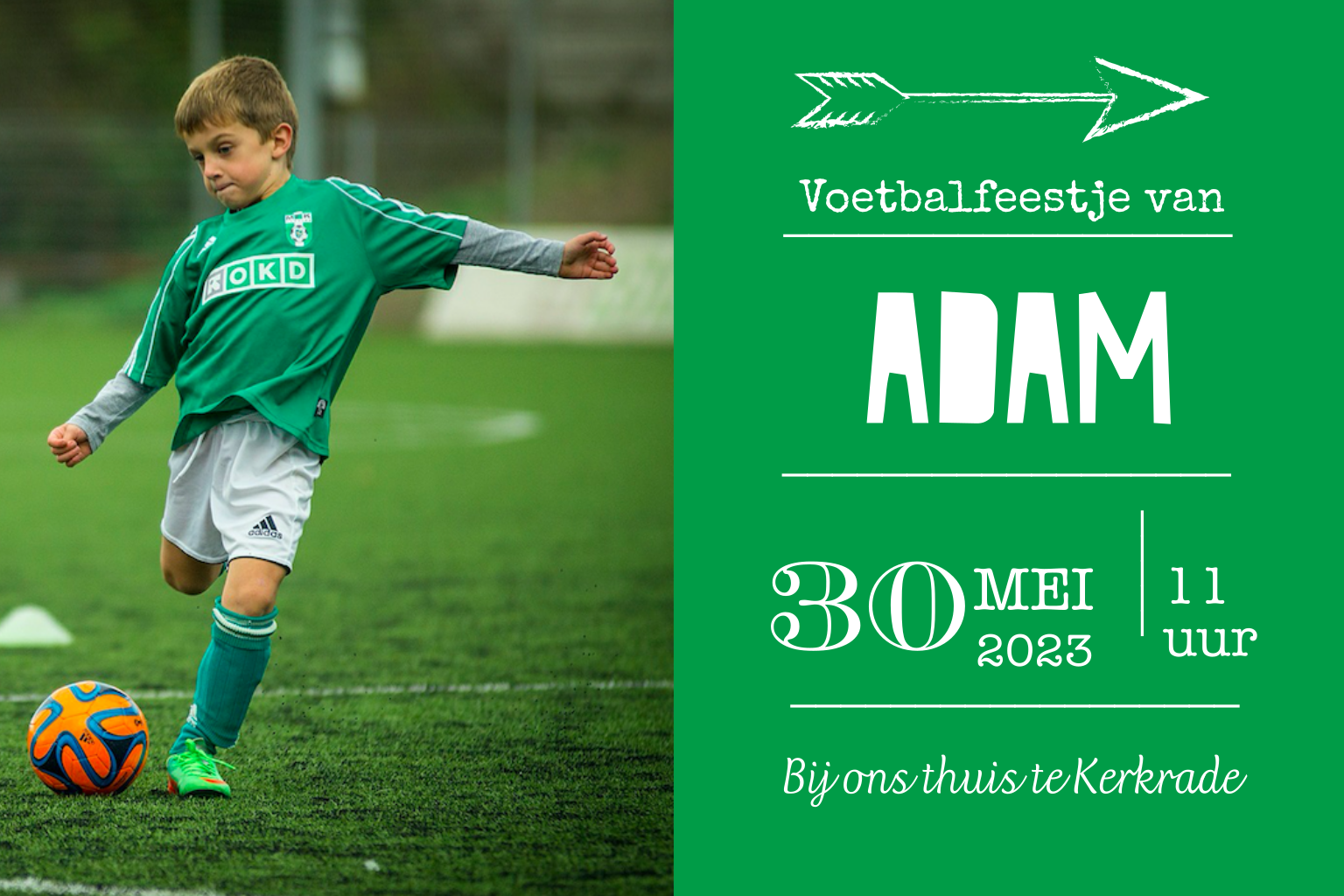 Uitnodiging voetbal kinderfeestje met foto. De kleur groen is naar wens aan te passen in de favoriete club-kleuren. (2648)