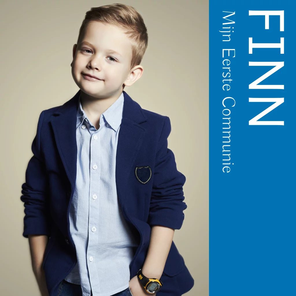 Moderne foto uitnodiging Communie voor een jongen met stempel. (2660)