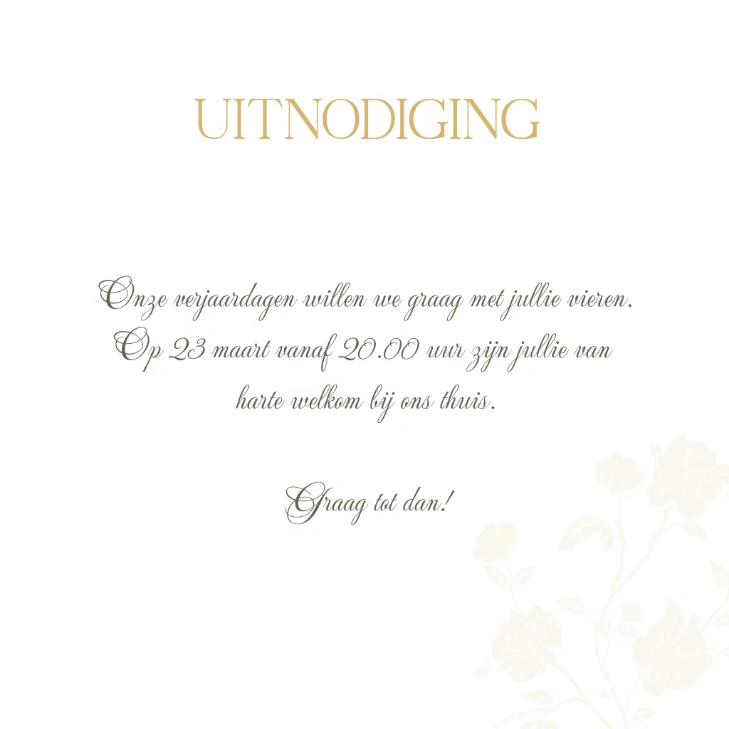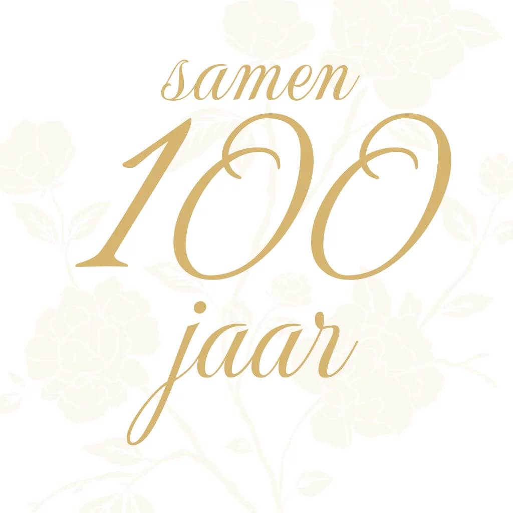 Samen 100 jaar uitnodiging met goudkleurige rozen. (2746)