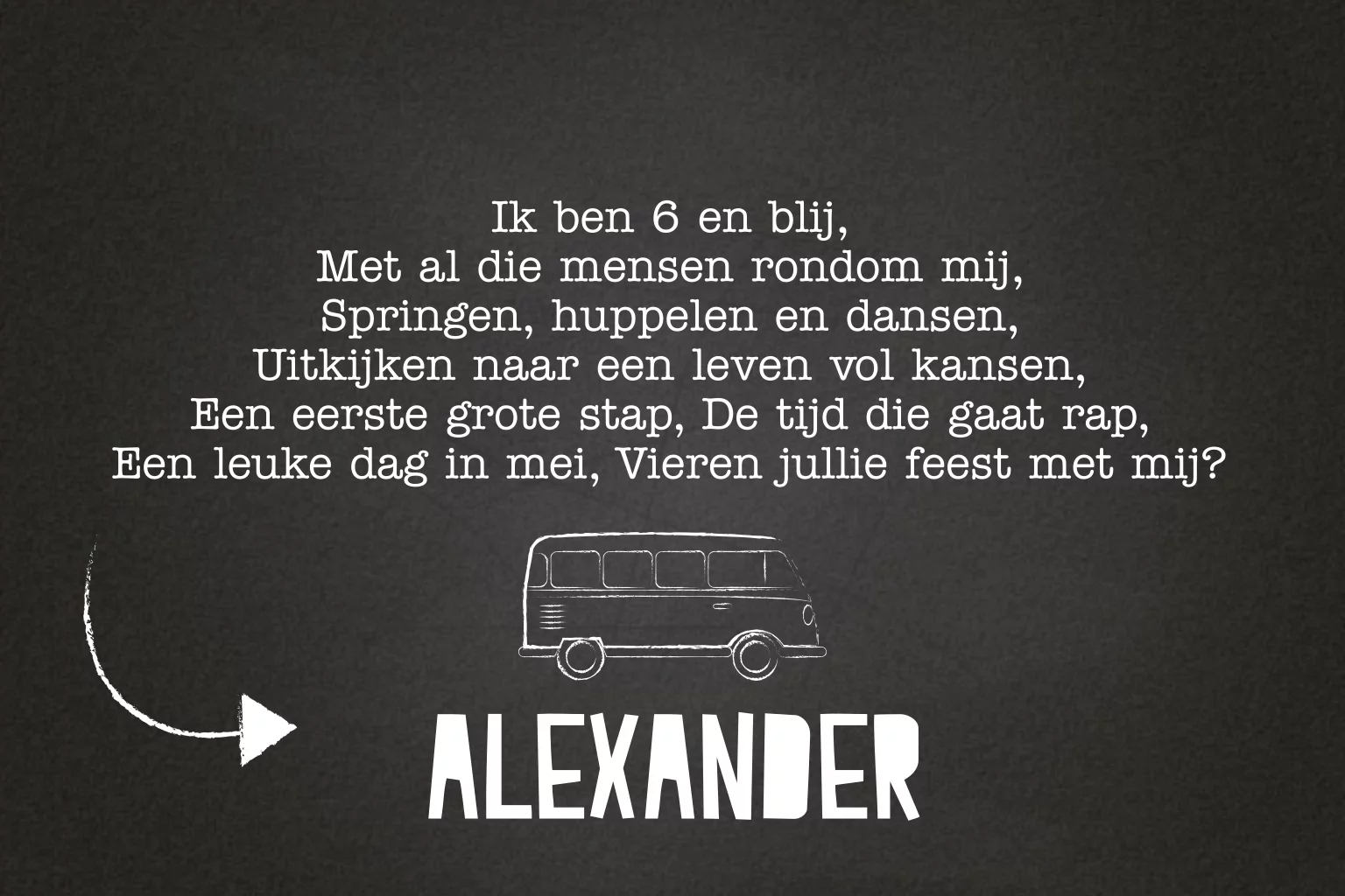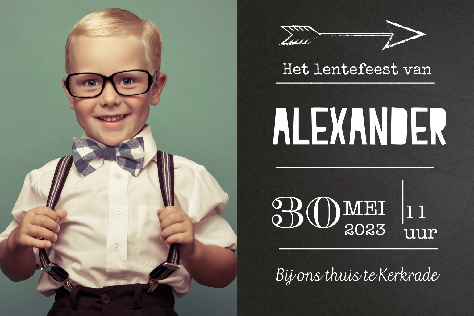 Uitnodigingskaart lentefeest foto jongen teksten jongen krijtbord
