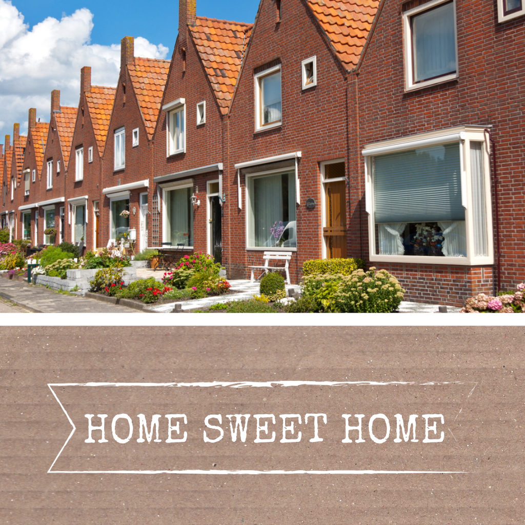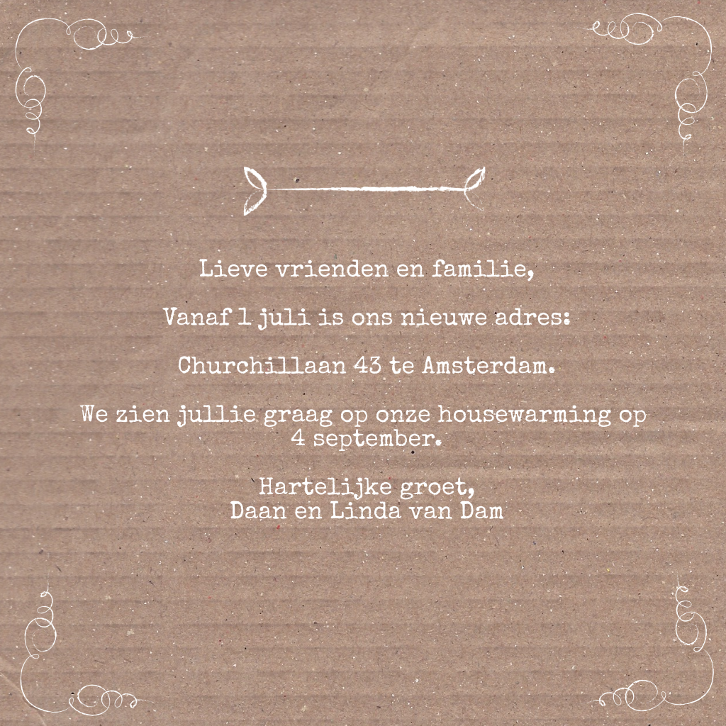 Verhuiskaart met foto van de nieuwe woning met karton look
