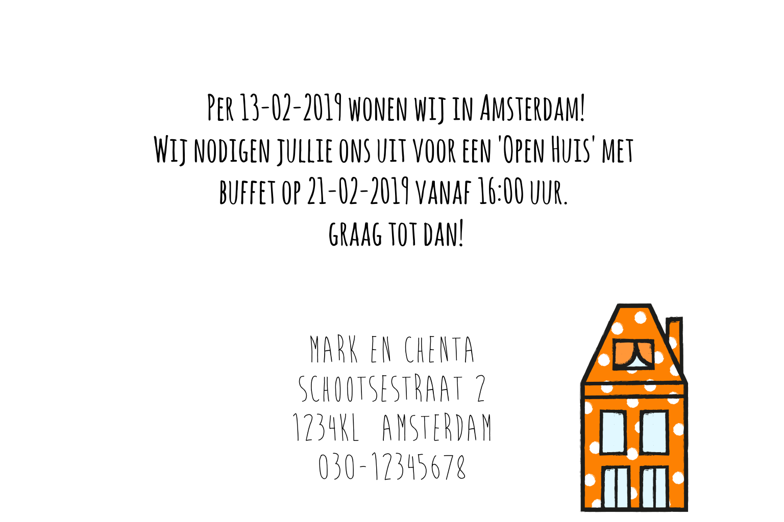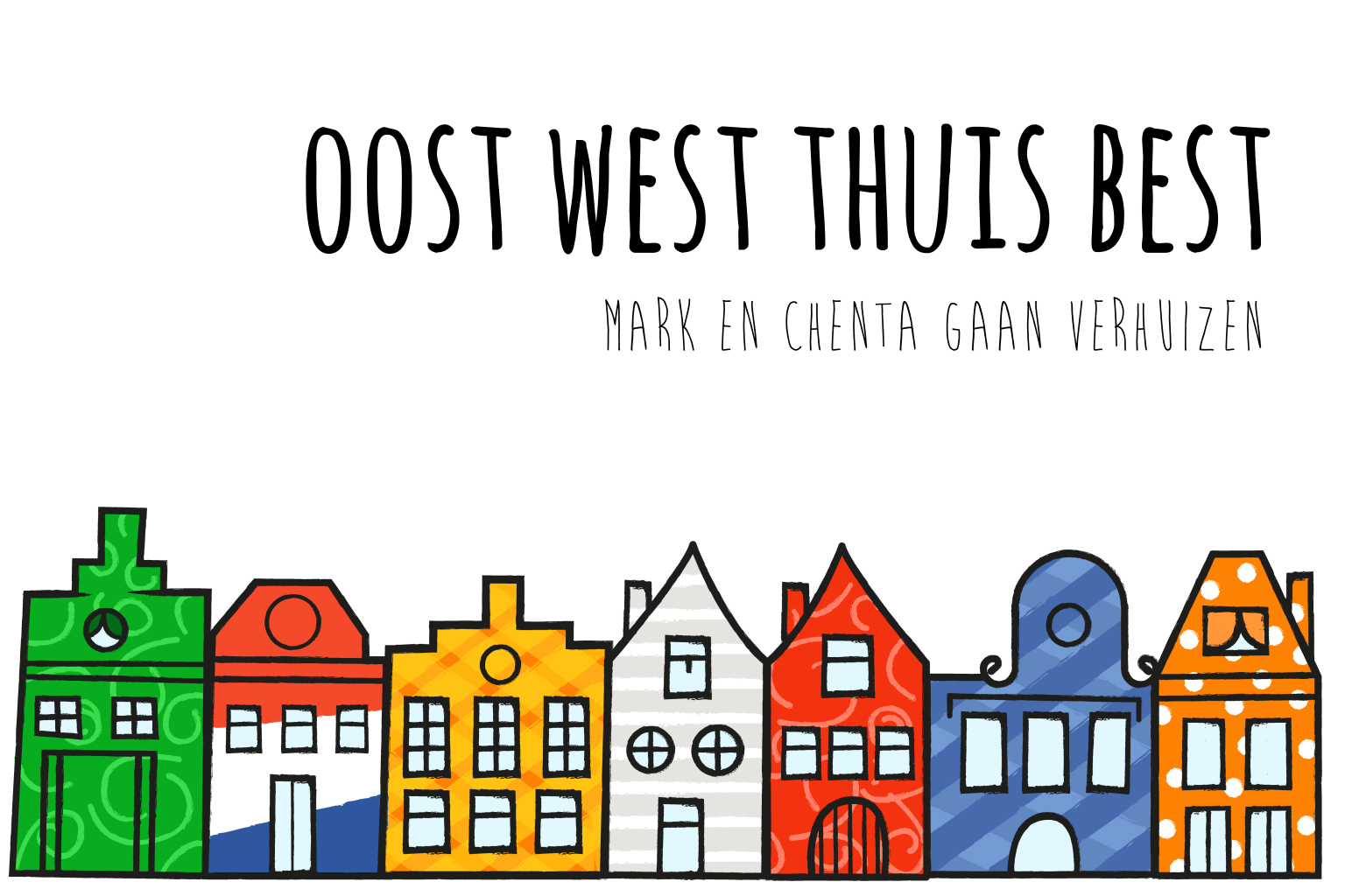 Verhuiskaart oost west thuis best met grachtenpanden met motief rood wit blauw oranje. (2756)