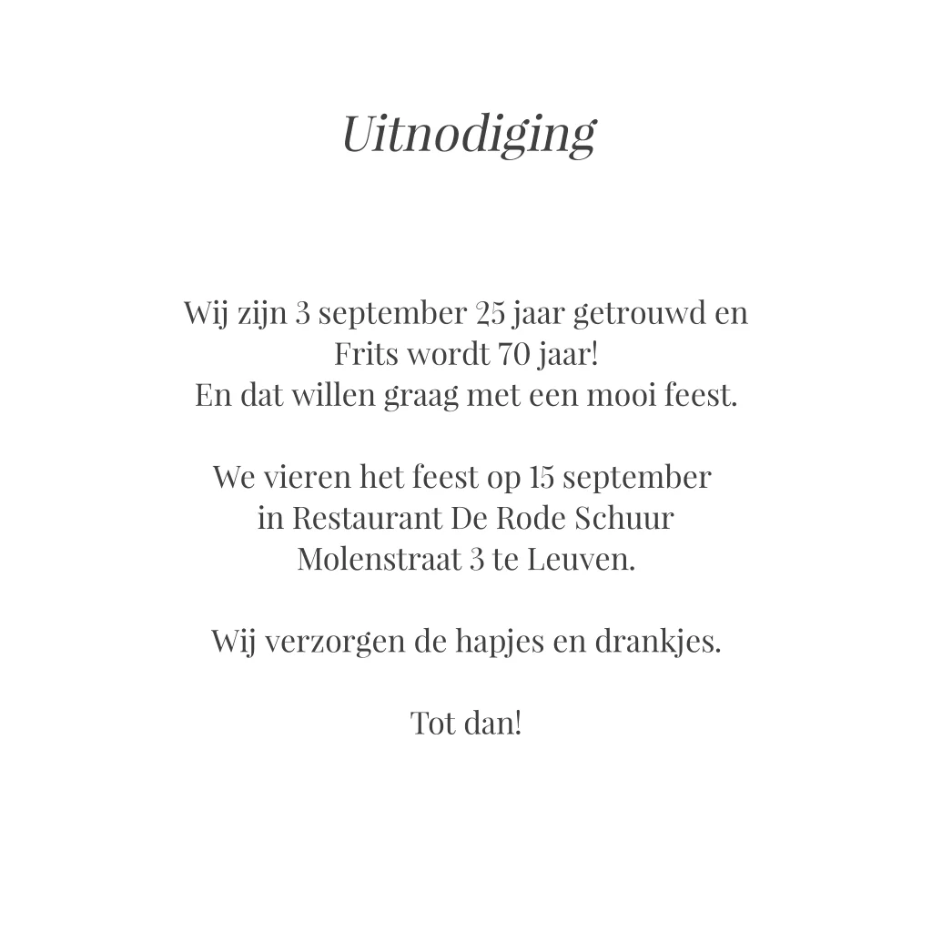 Jubileum uitnodiging 25 jaar getrouwd goudfolie