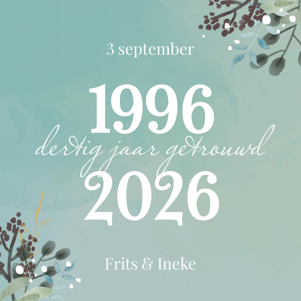 Vrolijke uitnodiging 30 jaar getrouwd 1996 met gouden jaren 1996 en 2026. De kleuren zijn naar wens aan te passen. (24255)