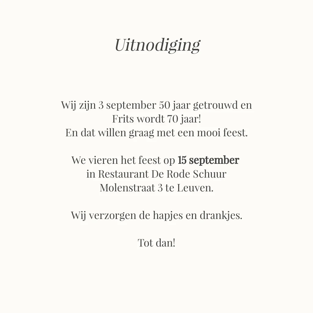 Vrolijke jubileum uitnodiging 50 jaar getrouwd