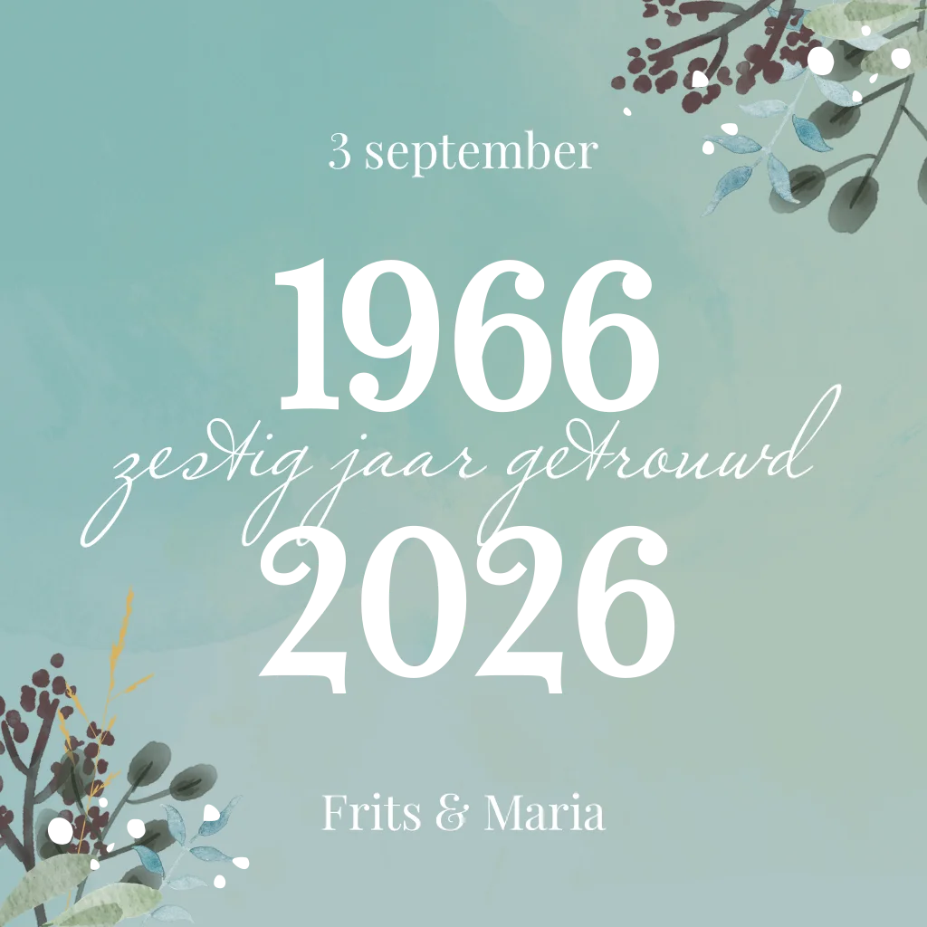 Vrolijke uitnodiging uitnodiging 60 jaar getrouwd 1966 met gouden jaren 1966 en 2026 De kleuren zijn naar wens aan te passen. (24255)