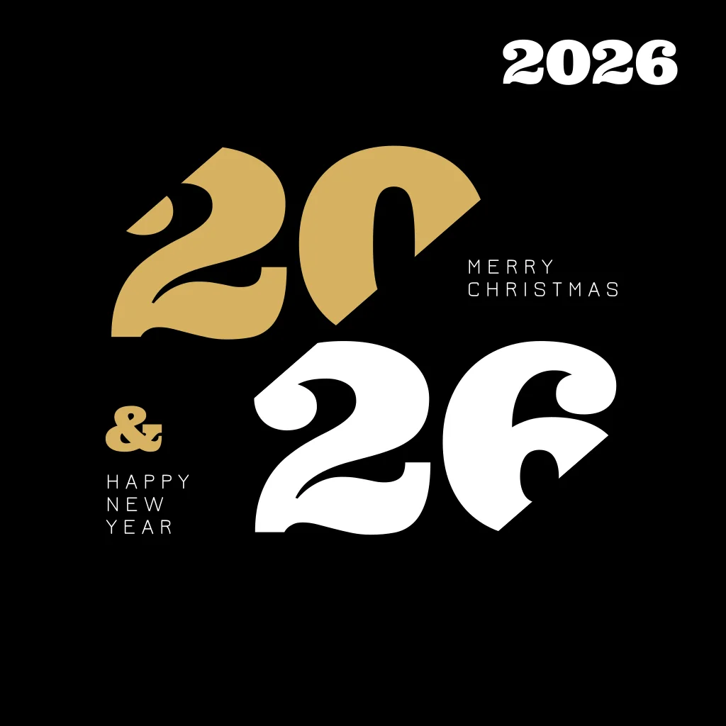 Zakelijke Kerstkaart 2026 zwart goud 2026 eigen logo aan de binnenkant. Strak design met vlakken. (23092)