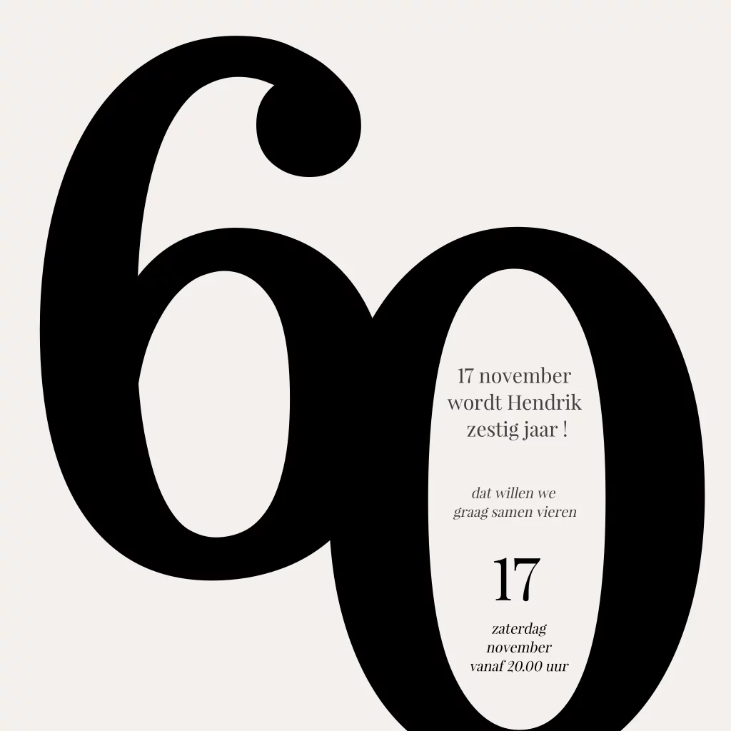 Zwart wit minimalistische uitnodiging 60 jaar verjaardag