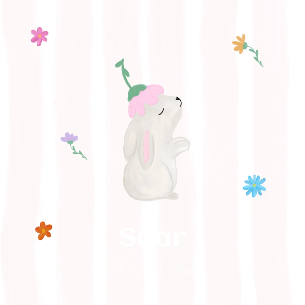 Geboortekaartje voor een meisje met konijntje en bloemen