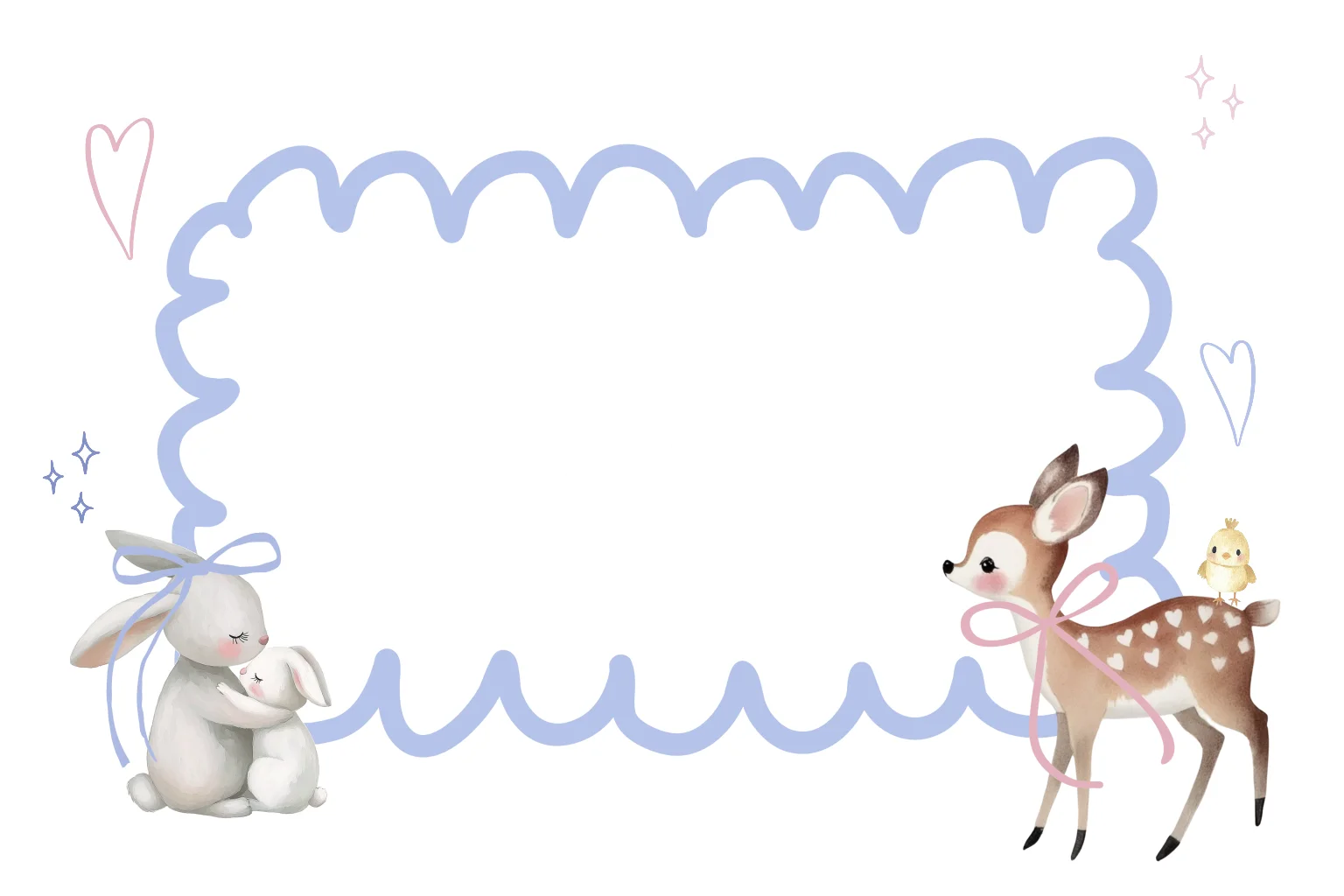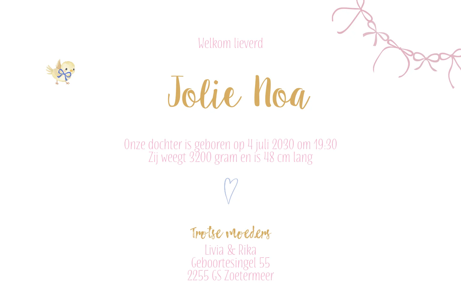 Dubbel geboortekaartje voor een meisje met verschillende lente dieren in zachte kleuren. Deze kaart is te bestellen in 15x10, 17x11, of 21x14 cm. Ook beschikbaar in andere versies (30395)